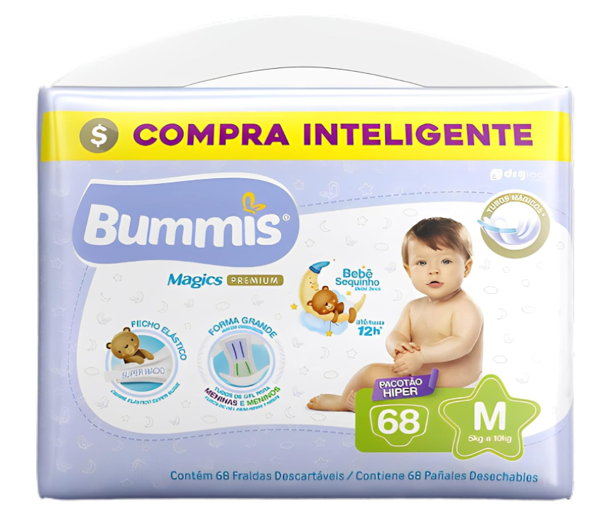 Fralda Infantil Bummis Magics Premium tamanho M com 68 unidades